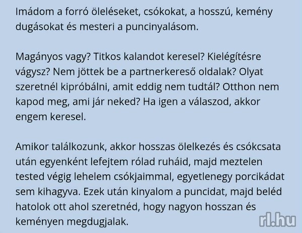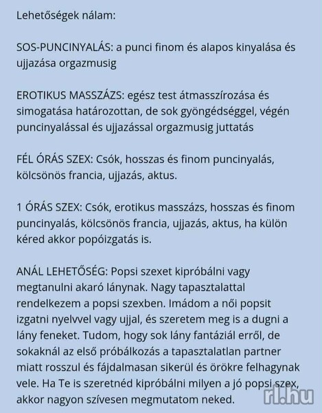 Sziasztok. Örülök hogy rám találtál. Ha magányos és elhanyagolt érzed magad és nincs programod akkor én leszek partnered, barát filing.Ha csak beszélgetni, kávézni vagy egy moziban wellness stb szeretnéd kellemese érezni magad akkor kérlek ne habozzon jelenkez. Maximális diszkréció. Viberen is válaszolok hogy ha egy normális bemutatkozás és elvárásod le írod Sok mindenre nyitott és vevő részletek privátba.70/7016/74920. Szép napot!